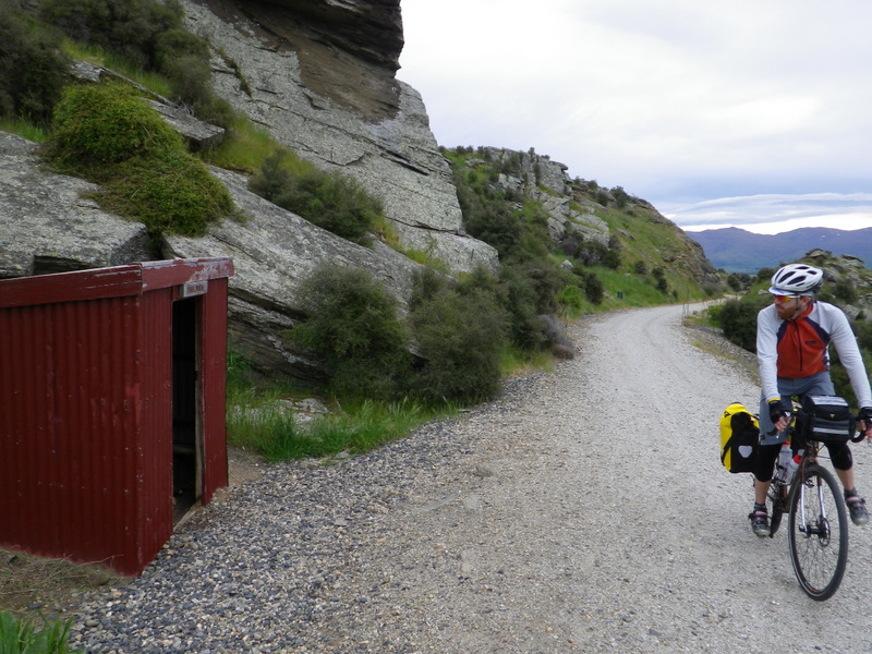 I stop to inspect a ganger's shed nestled amongst some large schist boulders