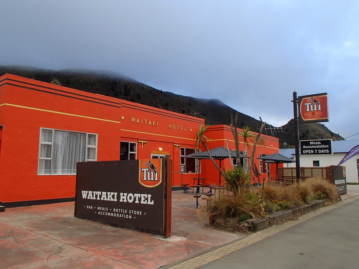We got into Kurow at about 2pm, so we had time to get some chores done. I laundered my clothes, cleaned and serviced my bike, then wandered uptown with Chris for an early dinner. The small town had all the usual shops and services - we grabbed some road food and headed to the Waitatki Hotel for a well-earned beer. All of the traditional pub food there looked awesome, and we were pretty hungry, so we ordered the unlikely combination of lasagna and mashed potato. After a short while a small mountain of food arrived on a plate the size of a bicycle wheel, and I hungrily scoffed the whole thing. It was the most I'd ever eaten in one sitting - I couldn't believe it. Plus I was still hungry. Chris also powered through his food mountain, expressing a similar sentiment that he'd never eaten so much in his life. Even the barmaid was impressed with our ingestion efforts - and here was me thinking the surefire way to impress a barmaid was to sit at the bar all night and show her just how much you can drink. The pub was warm and cozy, and we'd had a great day. I felt like staying there for a while longer, however knowing we had a huge day planned for tomorrow we sensibly dragged ourselves away and walked back to the cabin for an early night.