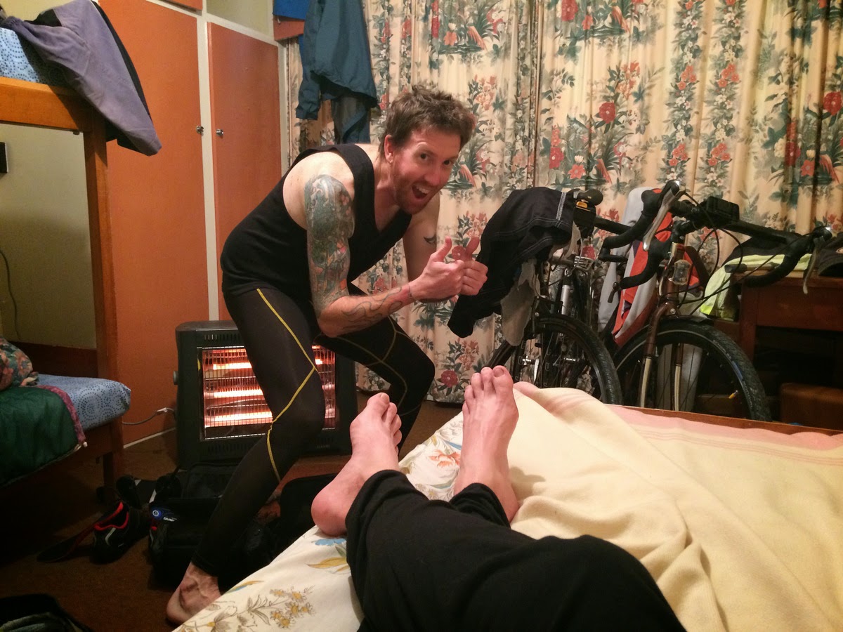 A dry roof, a 3 bar heater, and only 70km to ride tomorrow. Things are looking up for this guy!