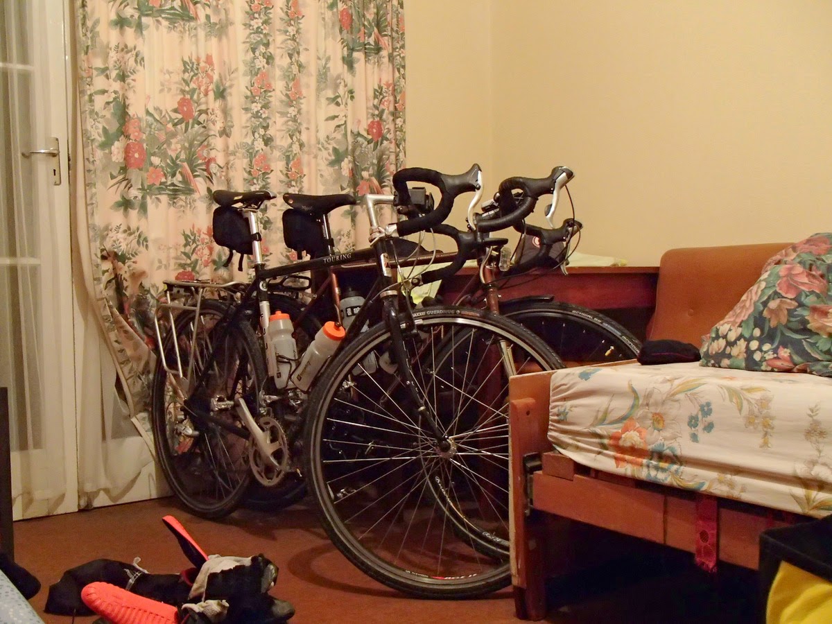 Bags unpacked and bikes stored inside. For $25 the small but basic cabin had a bit of a school camp vibe, but after a long day on the bike it was perfect.